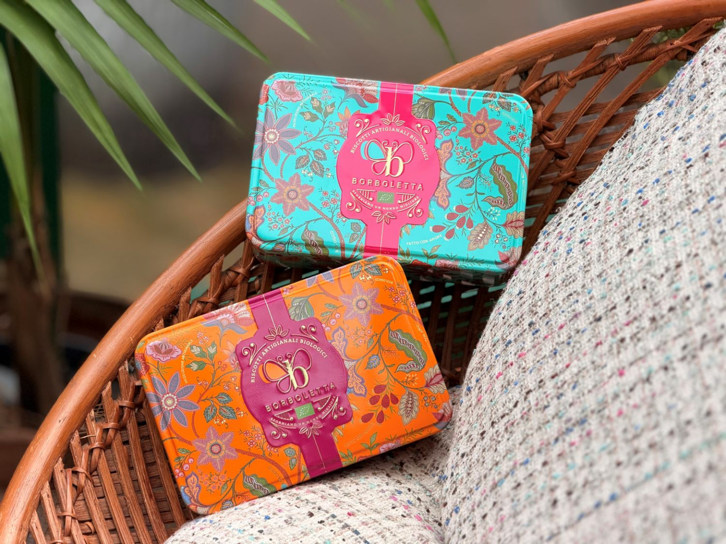 Both tins are conceived as design containers, two complementary proposals, one sweet and one savoury, that tell the Borboletta story through flavour, attention to detail and sustainability, perfectly embodying the brand philosophy: beautiful outside, good inside!