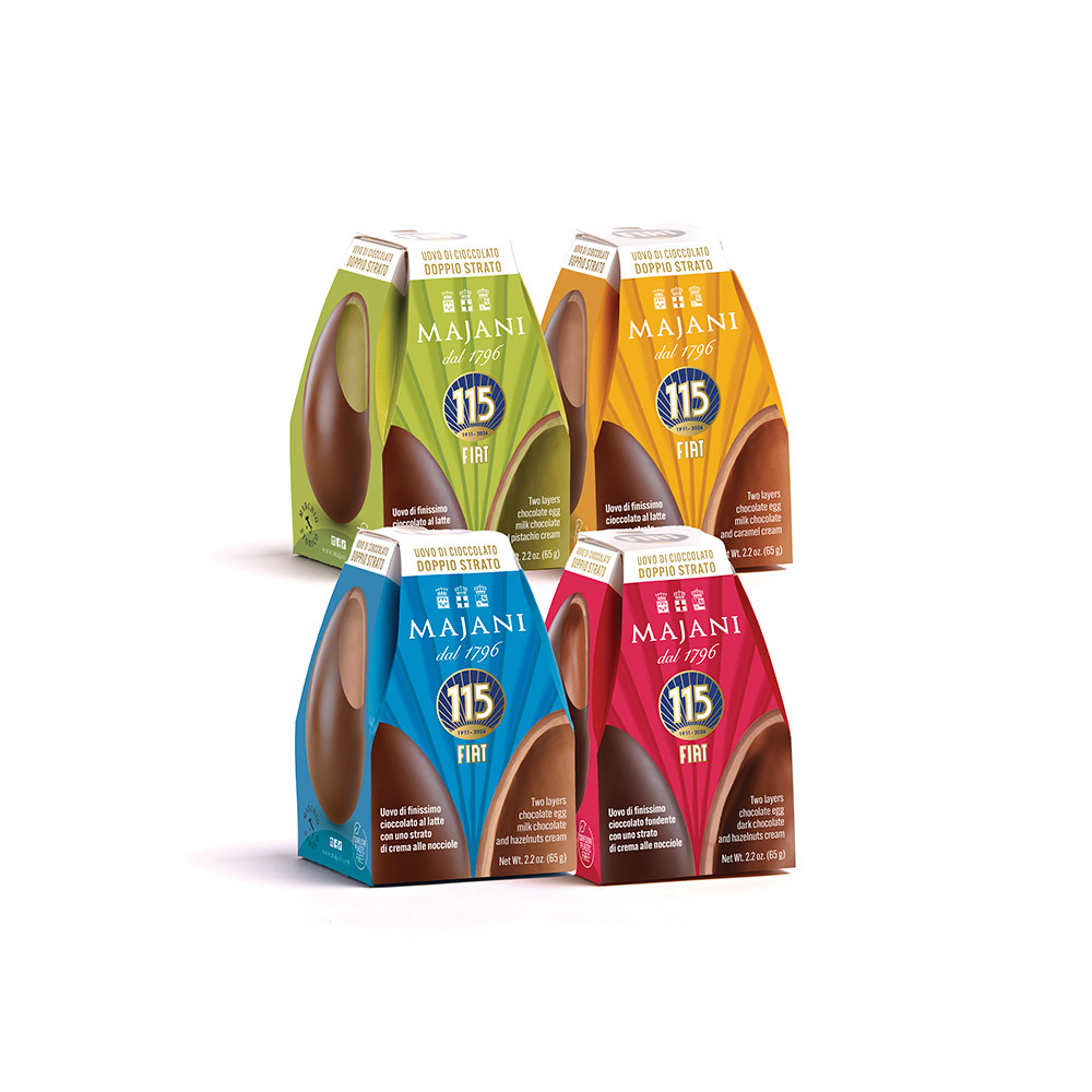 Majani presents a double-layer Easter egg featuring iconic packaging created to celebrate the FIAT anniversary