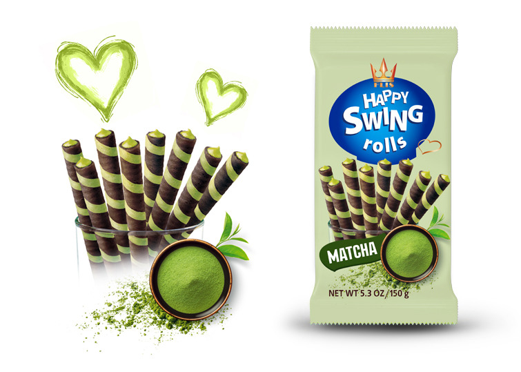 ZPC FLIS (Stand: 3.2 C 30) proudly presents its latest innovation at ISM Cologne 2025 – Happy Swing Matcha. This unique creation combines the crispy lightness of wafer rolls with a velvety cream made from authentic Japanese matcha green tea.