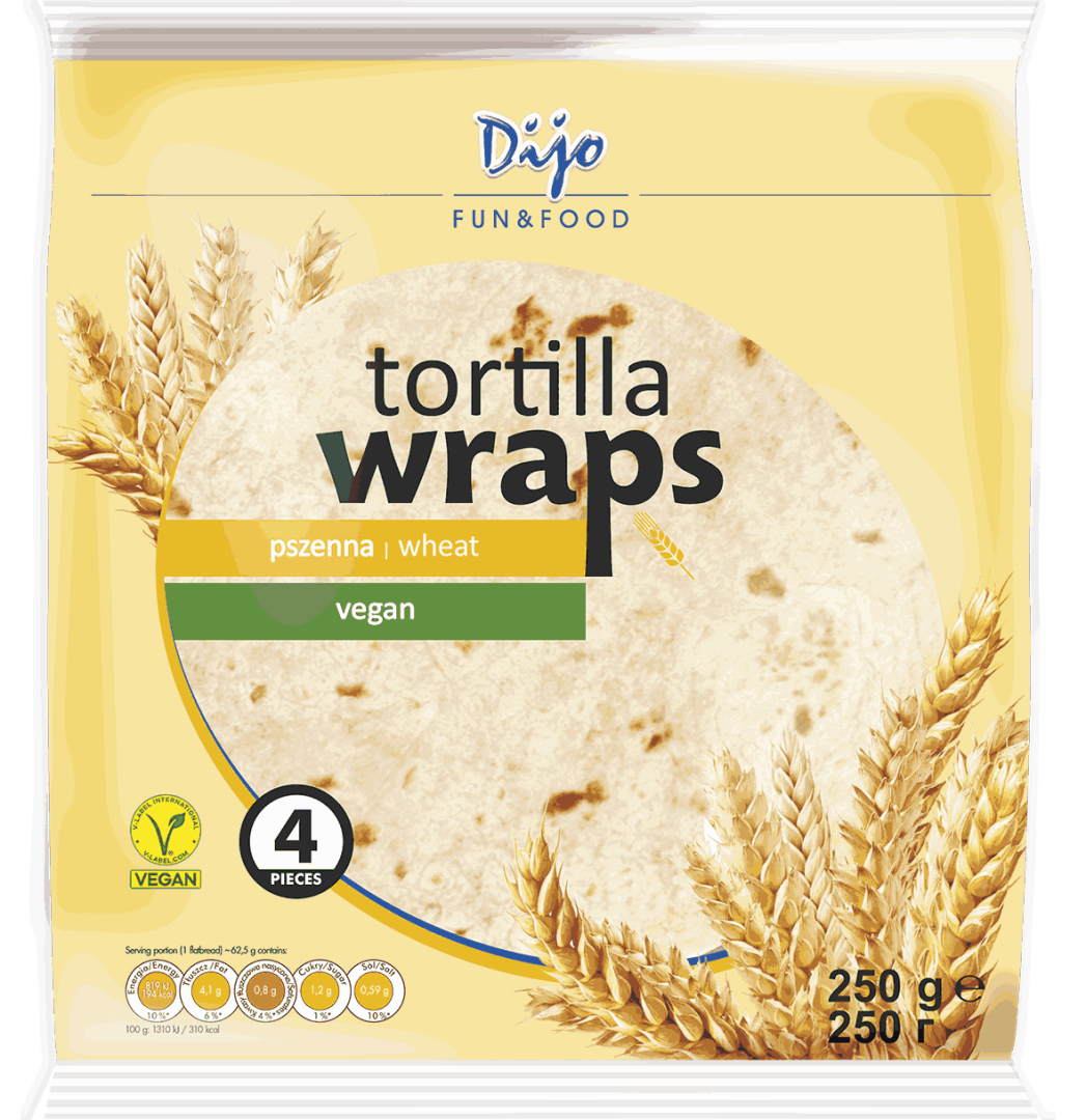Tortillas made from high-quality wheat offer a soft, flexible texture and a neutral, well-balanced taste that works perfectly across many culinary applications. They are available in foodservice formats designed for restaurants, catering, and quick-service concepts, as well as in retail packs suitable for home use. The range includes various sizes and flavored options, allowing the product to adapt to different menu styles and consumer preferences. Thanks to their stable structure, the tortillas hold fillings well, do not crack, and maintain freshness and softness after heating. They pair effortlessly with both savory and spicy ingredients, and combined with Dijo Salsa, they create flavorful, versatile dishes ideal for wraps, burritos, quesadillas, and quick snacks.